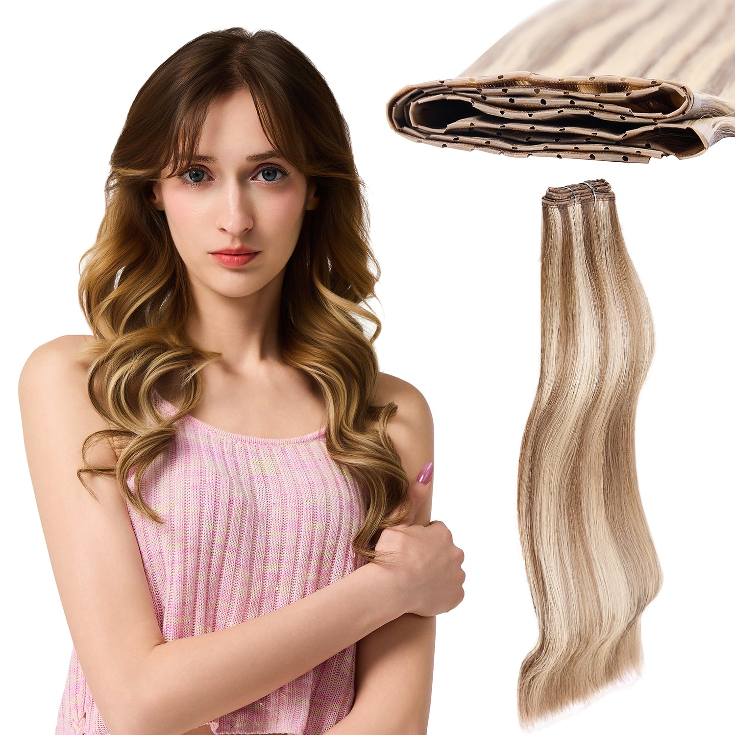 Butterfly Weft Hair Extensions Human Hair 18 inch 100g #60/9A Blonde Ombre Invisible Hair Extensions Human Hair Premium Luxury Quality Luxury Extensions for Parties & Special Occasions